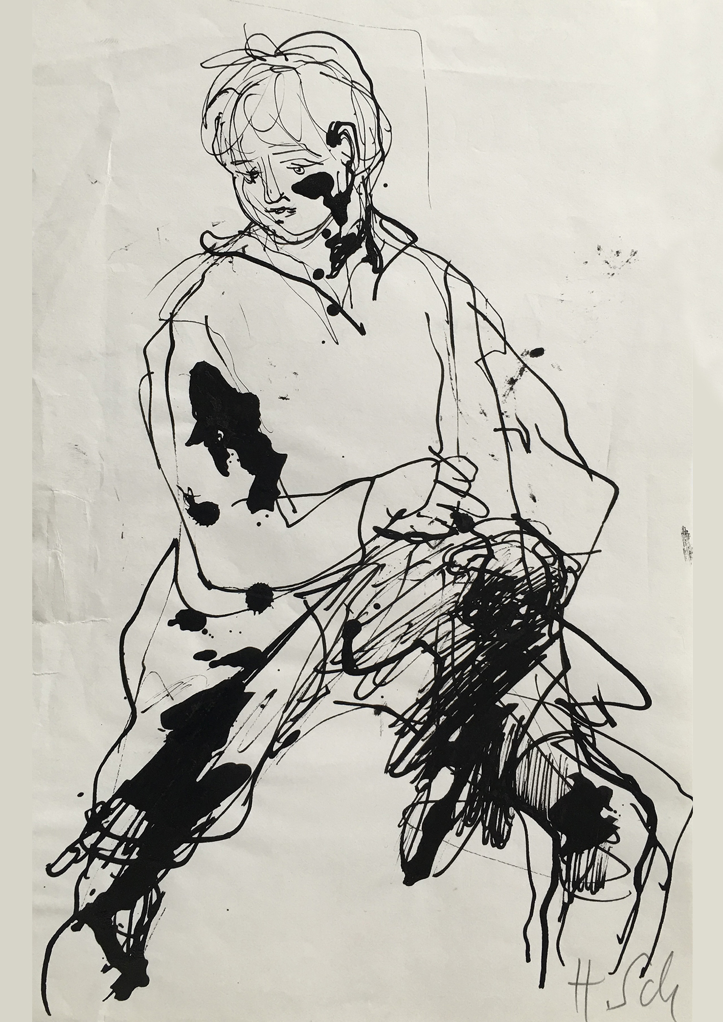 Schuberts Arbeitsweise ist spontan, jedoch äußerst konzentriert. Er setzt sofort Tusche ein, wobei er zumeist mehrere Versionen zeichnet, bis er das Ergebnis akzeptiert.